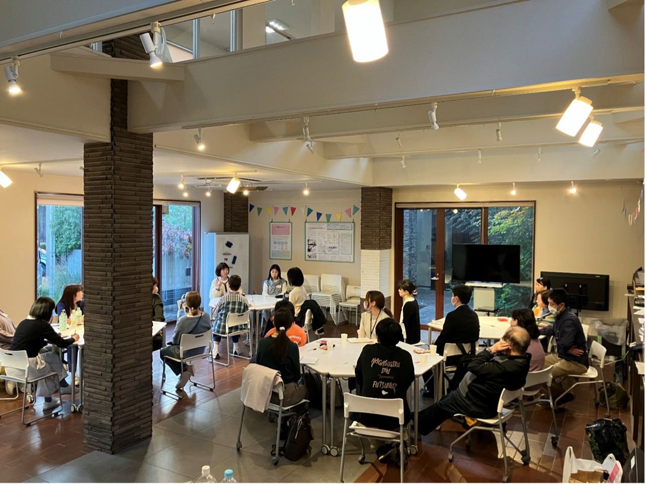 また、同日に第35回「子育てタウンミーティング」も開催。地域で子ども・子育てに関わるさまざまな組織、団体、学校などから23人のメンバーが参加しました。まず、直前のファミリーリソースプロジェクトの振り返りを行った後、「防災」と「防犯」をテーマに、各施設での取組紹介やグループでの意見交換を実施しました。メンバーからは「いざという時に行動できるよう、日頃から考えることが重要だと分かった」、「これまで正しいとされていた防災時の対応が見直され、新しい対応が推進されている地域とまだ知られていない地域があることを初めて知った」「訓練やマニュアルづくりのヒントを得られた」など、今回のミーティングが学びに繋がったという声が上がりました。
